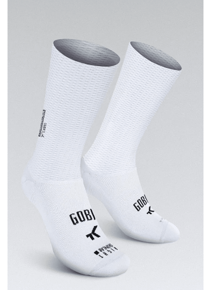 In de strijd tegen de klok telt elk detail. We hebben deze sokken ontworpen met een grotere hoogte, binnen de UCI-normen, en een geperforeerde stof met lage luchtweerstand, wat optimale temperatuurregeling biedt.