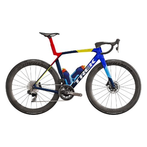 Heb je vragen over dit product of krijg je graag nog wat advies voor je besteld. Stel hier je vraag.De Madone SLR 7 AXS Gen 8 is een ultra-aerodynamische, superlichte volbloed racefiets. Het 900 Series OCLV Carbon frame is niet alleen aerodynamisch, maar ook ultralicht voor supersnelle beklimmingen. De lichtgewicht IsoFlow frametechnologie zorgt ervoor dat de Madone geen comfort opoffert ten gunste van snelheid. Om elk mogelijk aerodynamisch voordeel uit te buiten, wordt de Madone SLR standaard geleverd met RSL Aero bidons en bidonhouders om de luchtweerstand nog verder te verlagen. Deze fiets is afgemonteerd met een SRAM Force AXS D2 aandrijflijn, carbon wielen en een Trek Aero RSL geïntegreerde stuur/stuurpen.